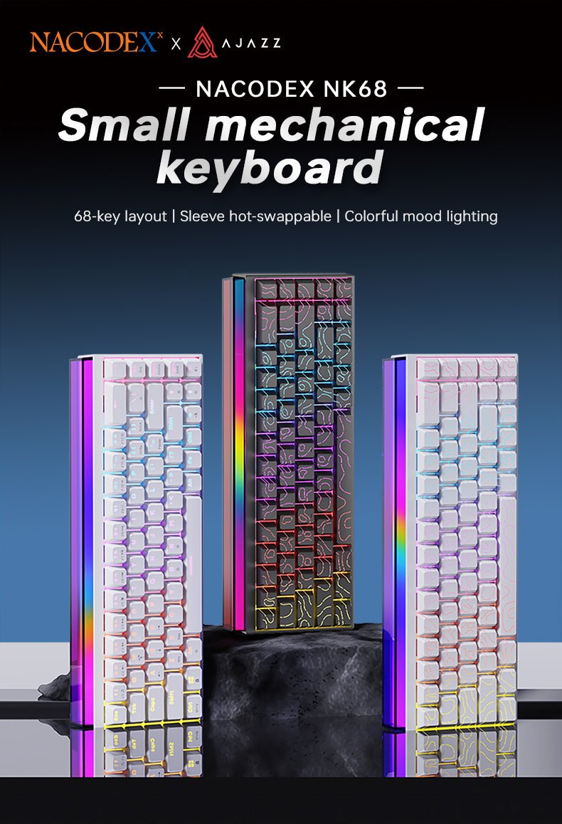 Maximize your desk space without sacrificing essential functionality with the AJAZZ NK68. Featuring a streamlined 65% layout with 68 keys, this wired mechanical keyboard is built for both gamers and daily typists. It comes equipped with smooth, linear Red switches that are fully hot-swappable, allowing you to easily pull and replace them to customize your exact typing feel without any soldering. Weighing just 500g, it’s incredibly portable and easy to pack. The keyboard features a sturdy tray-mounted structure and boasts stunning south-facing RGB backlighting with double-shot shine-through keycaps. Enjoy a lag-free experience with full N-Key Rollover (NKRO) and seamless, driver-free compatibility across Windows, Mac, and Android.